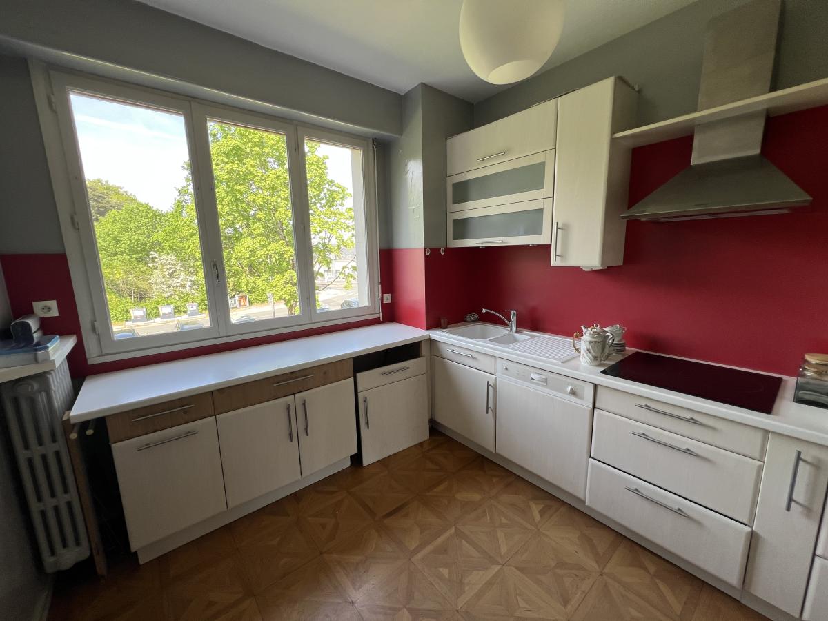 Dans l’ensemble immobilier de le Val d’Or à Avrillé, au 1er étage sans ascenseur, un appartement à rafraîchir qui comprend une entrée, un salon-séjour avec balcon, un dégagement avec placard distribue trois chambres, une salle de bains, un WC et une cuisine aménagée et équipée (plaque de cuisson, four traditionnel et lave-vaisselle).